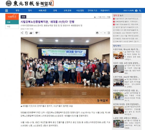 [2022.11.06.] 동북일보-시립강북노인종합복지관, '세대를 IT(잇)다' 진행