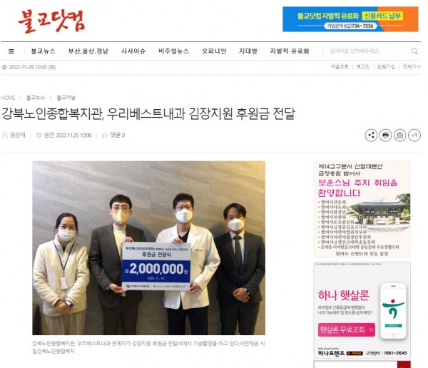 [2022.11.25.] 불교닷컴-강북노인종합복지관, 우리베스트내과 김장지원 후원금 전달