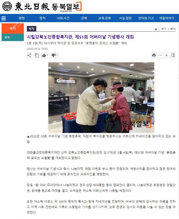 [2023.05.02]동북일보-시립강북노인종합복지관, 제51회 어버이날 기념행사 개최
