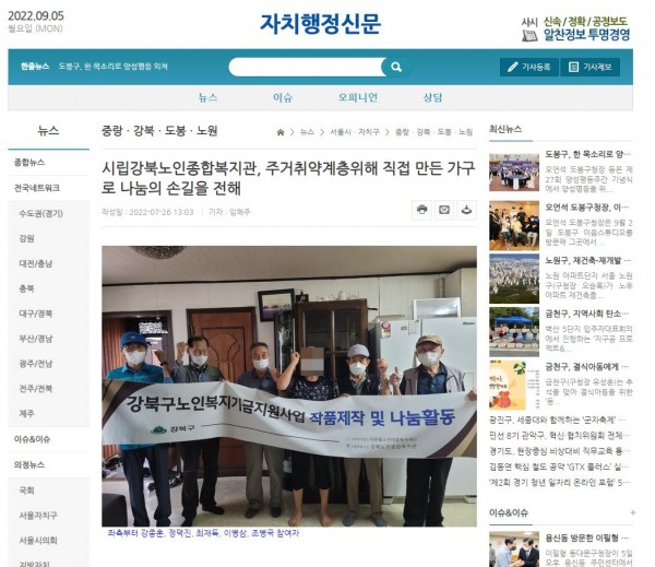 [2022.07.26] 자치행정신문-시립강북노인종합복지관, 주거취약계층위해 직접 만든 가구로 나눔의 손길 전해