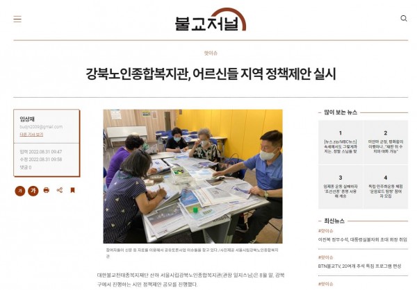 [2022.08.31]불교저널-강북노인종합복지관, 어르신들 지역 정책제안 실시
