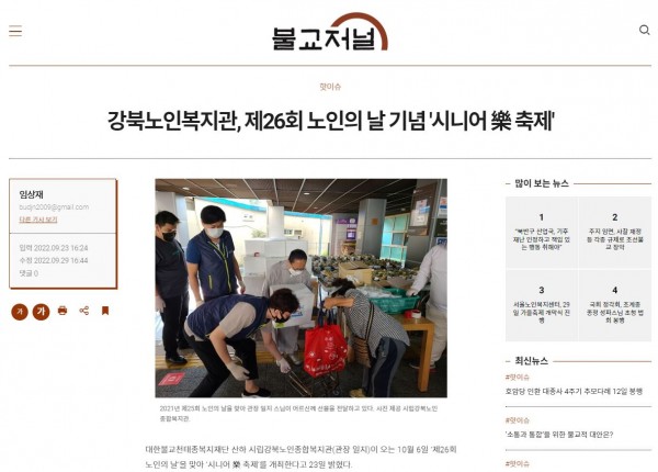 [2022.09.23] 불교저널-강북노인복지관,제26회 노인의 날 기념 '시니어 락 축제'