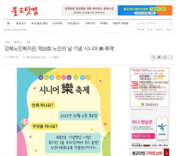 [2022.09.27] 불교닷컴-강북노인복지관, 제26회 노인의 날 기념 '시니어 락 축제'