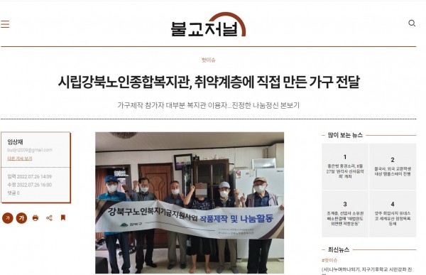 [2022.07.26] 불교저널-시립강북노인종합복지관, 취약계층에 직접 만든 가구 전달