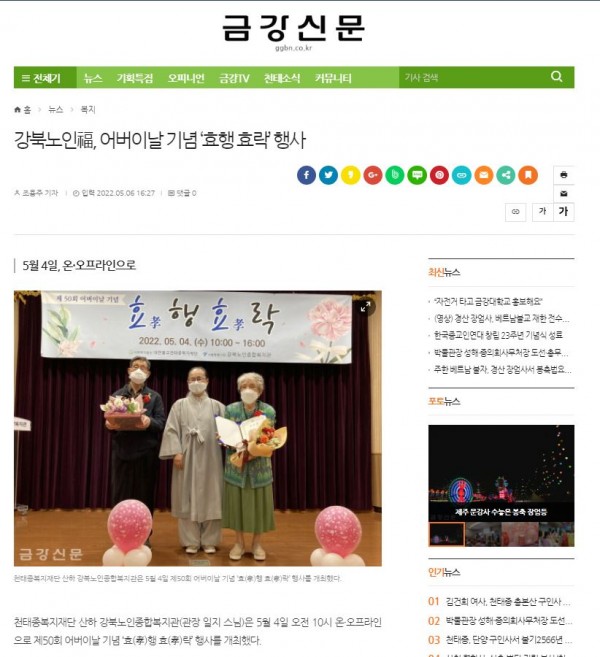 [2022.05.06] 금강신문-강북노인복, 어버이날 기념 '효행효락' 행사