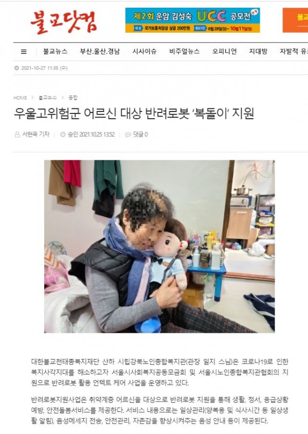 [2021.10.25] 불교닷컴-우울고위험군 어르신 대상 반려로봇 '복돌이'지원