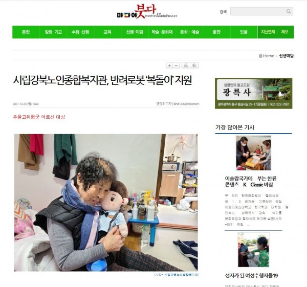 [2021.10.25] 미디어붓다-시립강북노인종합복지관,반려로봇 '복돌이'지원