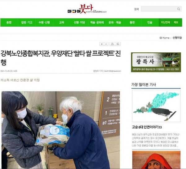 [2021.12.29] 미디어붓다-강북노인종합복지관,우양재단 '쌀타 쌀 프로젝트' 진행