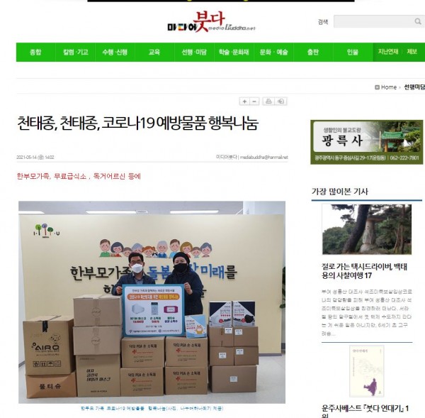 [2021.05.14] 미디어붓다- 천태종, 코로나19 예방물품 행복나눔