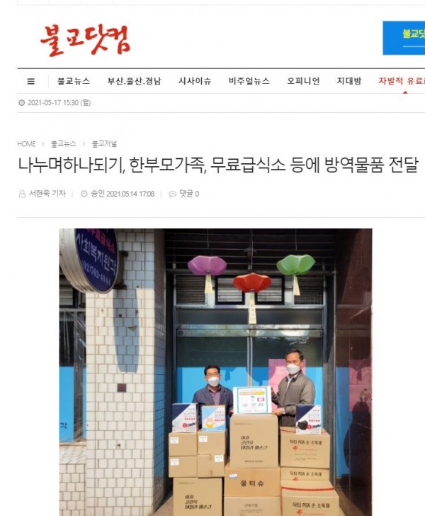 [2021.05.14] 불교닷컴-나누며하나되기, 한부모가족, 무료급식소 등에 방역물품 전달