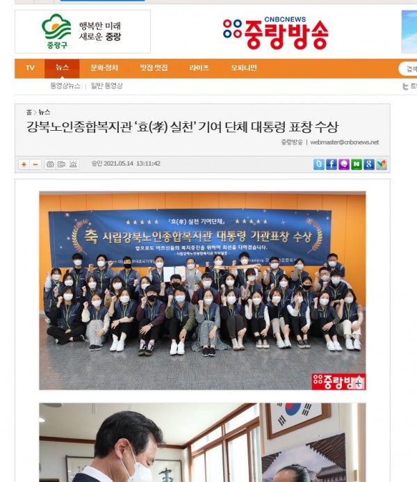 [2021.05.14] 중랑방송-강북노인종합복지관 '효실천' 기여단체 대통령 표창 수상