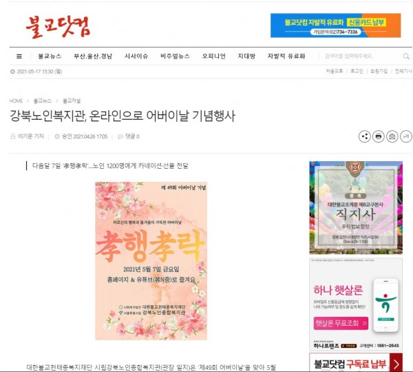 [2021.04.26] 불교닷컴-강북노인복지관,온라인으로 어버이날 기념행사