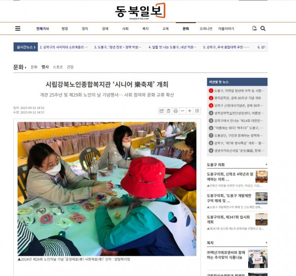 [2025.09.21] 시립강북노인종합복지관 ‘시니어 樂축제’ 개최 - 동북일보