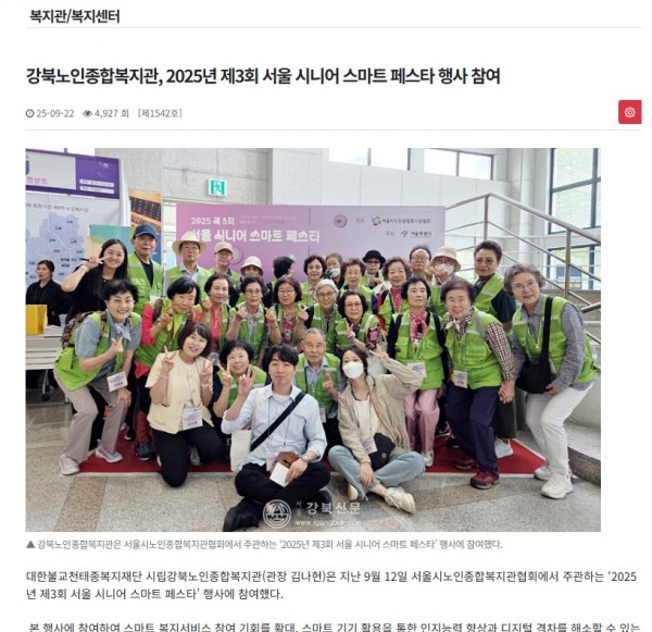 [2025.09.23] 강북노인종합복지관, 2025년 제3회 서울 시니어 스마트 페스타 행사 참여 - 서울강북신문