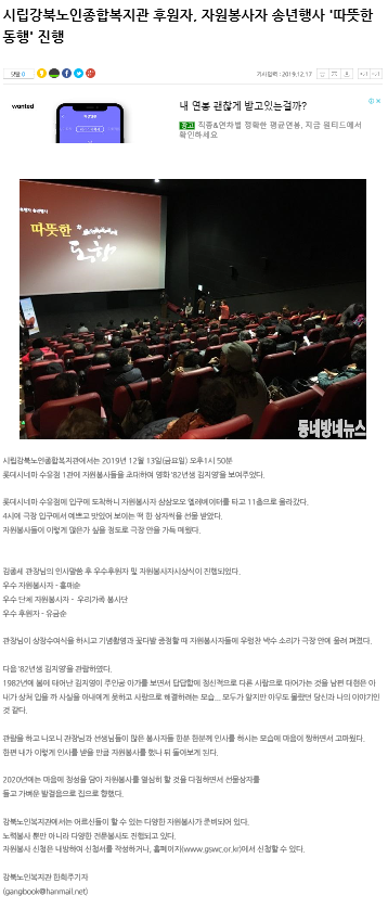 [2019.12.27] 시립강북노인종합복지관 후원자, 자원봉사자 송년행사 '따뜻한 동행' 진행