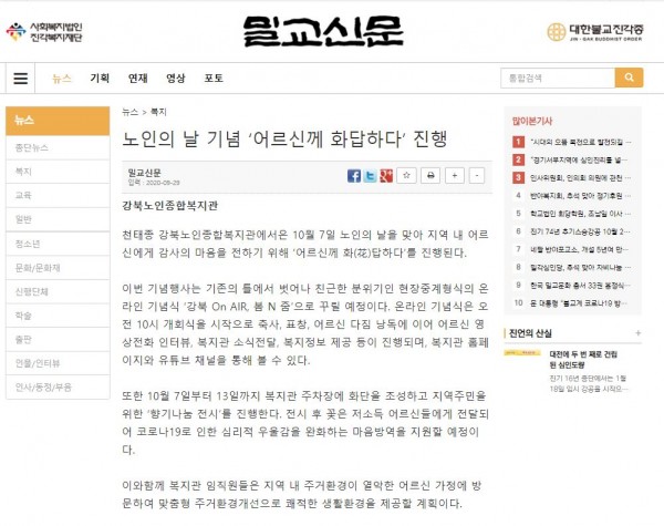[2020.09.29]밀교신문-노인의 날 기념 '어르신께 화답하다' 진행