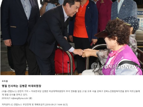 [2018.09.21] 연합뉴스 - 명절 인사하는 김병준 비대위원장