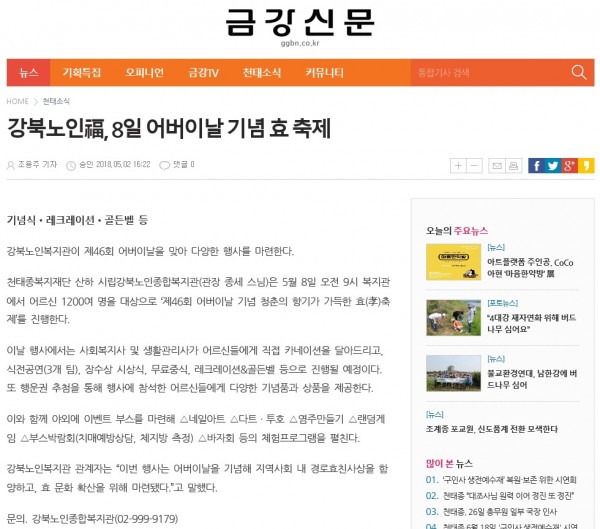 [2018.05.02] 금강신문 - 강북노인 8일 어버이날기념 효축제