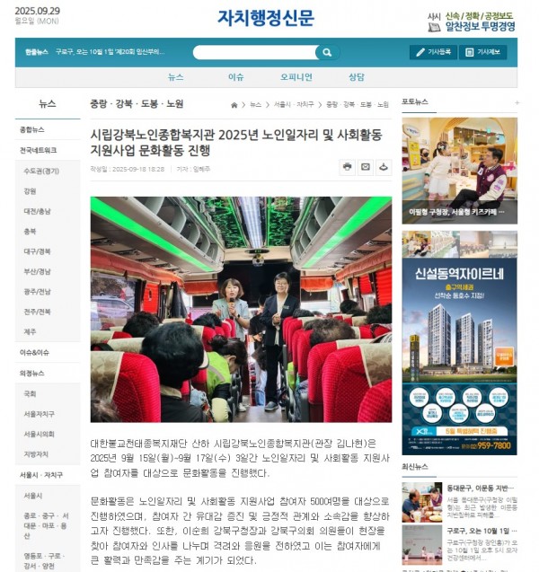 [2025.09.18] 시립강북노인종합복지관 2025년 노인일자리 및 사회활동 지원사업 문화활동 진행 - 자치행정신문
