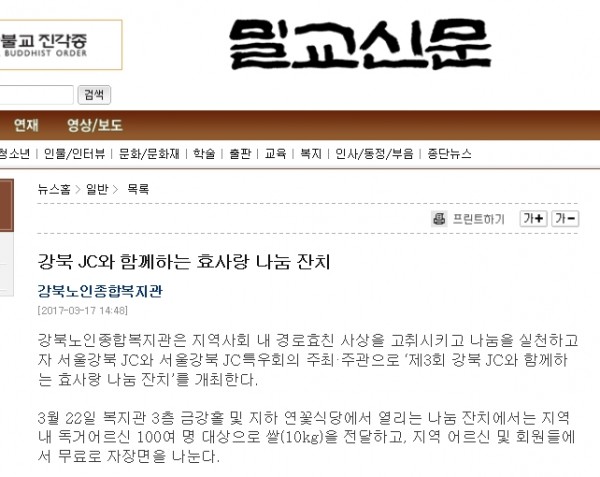 [2017.03.17] 밀교신문 - 강북 JC와 함께하는 효사랑 나눔 잔치