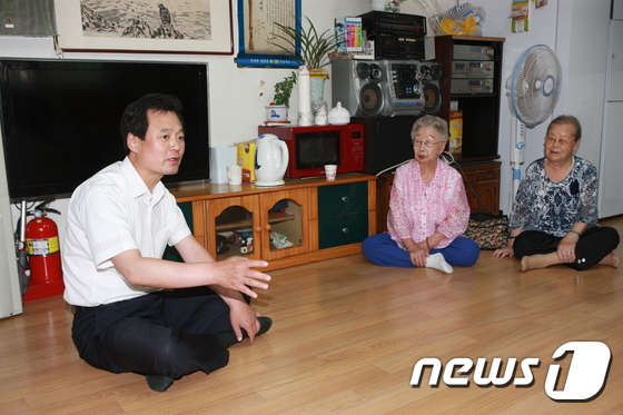 | 박겸수 강북구청장이 4일 무더위쉼터로 지정된 번1동 경로당을 방문해 주민과 이야기를 나누고 있다.(강북구 제공)? News1 |