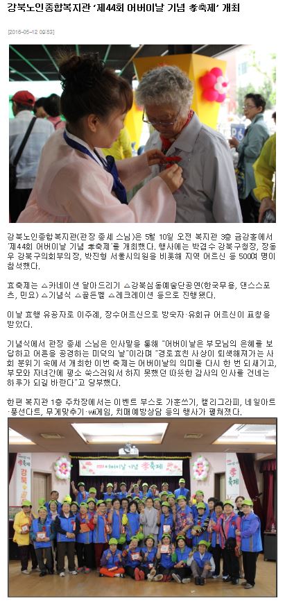 [2016.5.12] 밀교신문 - 강북노인종합복지관 ‘제44회 어버이날 기념 孝축제’ 개최