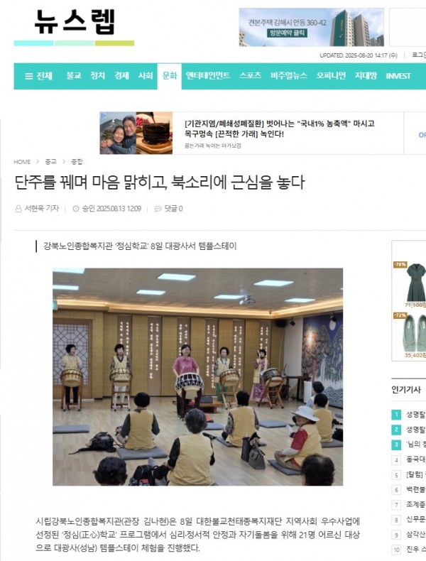 [2025.08.13] 단주를 꿰며 마음 맑히고, 북소리에 근심을 놓다 - 뉴스렙