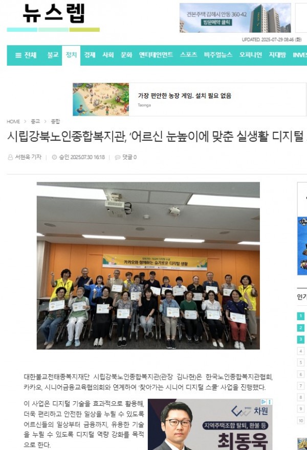 [2025.07.30] 시립강북노인종합복지관, ‘어르신 눈높이에 맞춘 실생활 디지털 교육’ - 뉴스렙
