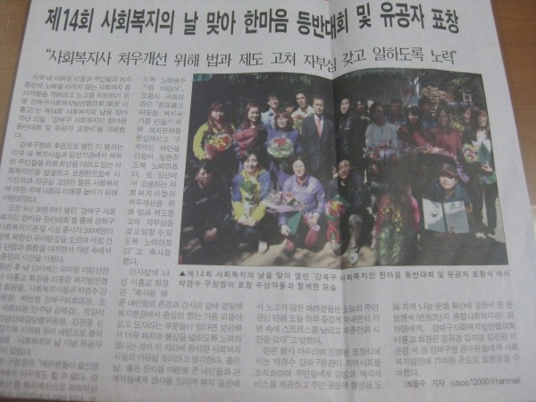 [2013.10.14] 동북일보 - 제14회 사회복지의 날 맞아 한마음 등반대회 및 유공자 표창