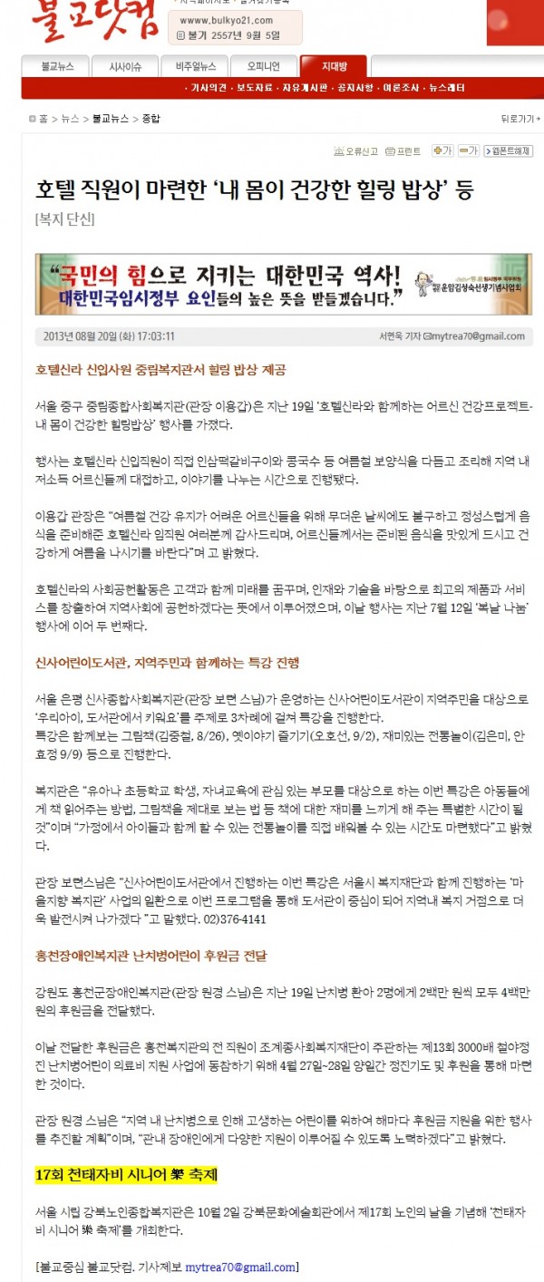 [2013.8.20] 불교닷컴 - 제17회 천태자비 시니어 樂 축제