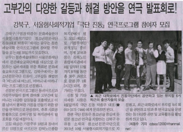 [2012.4.23]동북일보 - 고부간의 다양한 갈등과 해결 방안을 연극 발표회로!