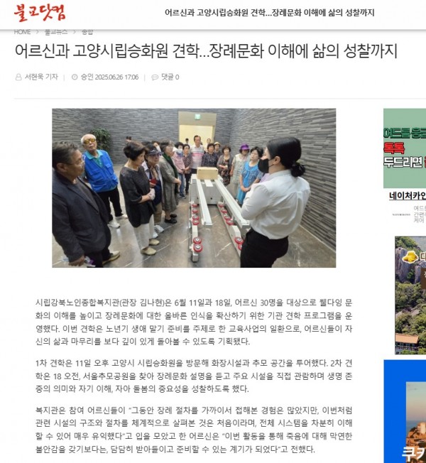 [2025.06.26] 어르신과 고양시립승화원 견학…장례문화 이해에 삶의 성찰까지 - 불교닷컴
