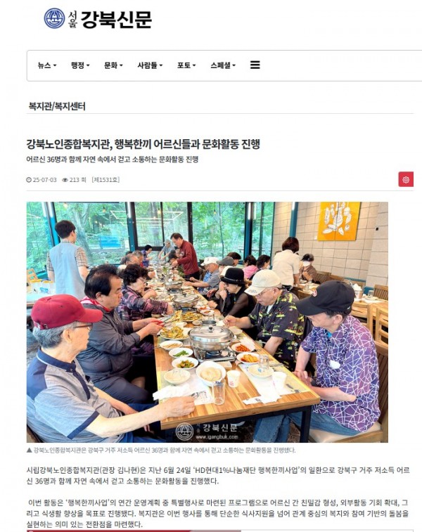 [2025.07.03] 강북노인종합복지관, 행복한끼 어르신들과 문화활동 진행 - 서울강북신문