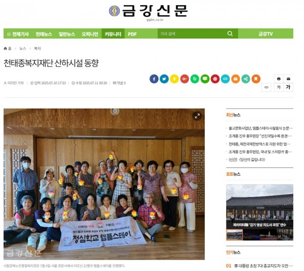 [2025.07.10] 천태종복지재단 산하시설 동향 ' 강북노인福, 정심(正心)학교 템플스테이' - 금강신문
