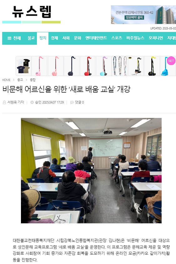 [2025.04.07] 비문해 어르신을 위한 ‘새로 배움 교실’ 개강 - 뉴스렙