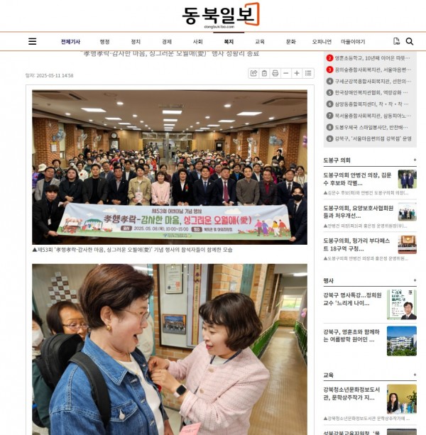 [2025.05.11] 시립강북노인종합복지관, 제53회 어버이날 기념 행사 성료 - 동북일보