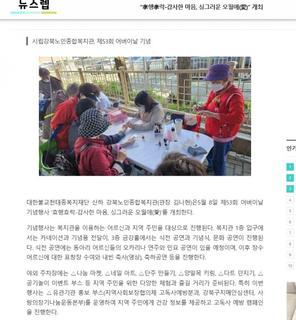 [2025.04.23] “孝행孝락-감사한 마음, 싱그러운 오월애(愛)” 개최 - 뉴스렙
