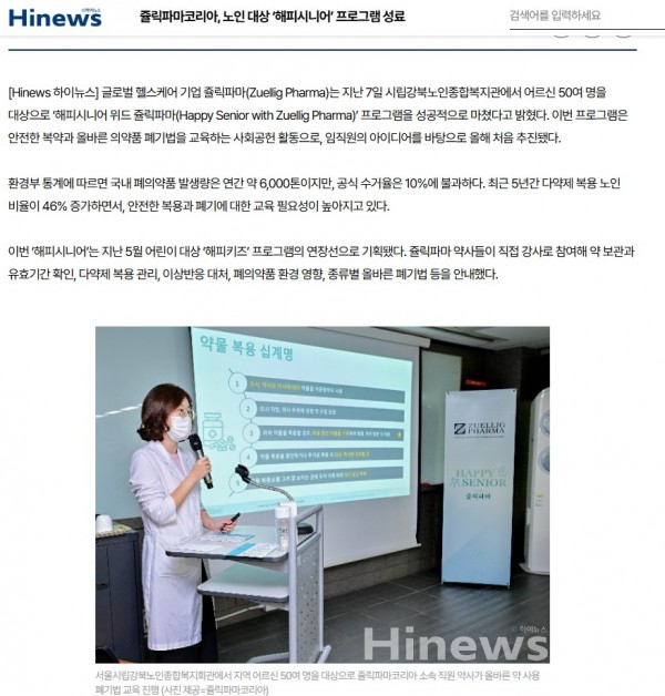 [2025.11.10] 쥴릭파마코리아, 노인 대상 ‘해피시니어’ 프로그램 성료 - 하이뉴스