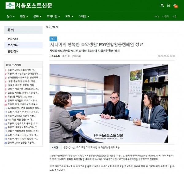 [2025.11.14] ‘시니어의 행복한 복약생활’ ESG연합활동캠페인 성료 - 서울포스트신문
