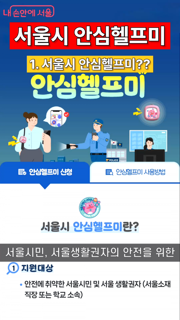 서울시는 시민들이 일상 속에서 위급한 상황이 발생했을 때, 빠르고 안전하게 도움을 받을 수 있도록 '서울시 안심헬프미' 서비스를 운영하고 있다. 이 서비스는 긴급 상황 시 버튼을 누르는 것만으로도 112나 119 상황실에 자동으로 위치 정보가 전송되고, 가장 가까운 지구대나 파출소에서 즉시 출동하는 실시간 긴급 지원 시스템이다. 또한, 서울시가 운영 중인 '서울시 안심이 앱'과 연동되어 신고 접수와 대응이 더욱 신속하게 이루어지도록 설계되어 있다. ☞ [관련 기사] NEW '안심헬프미' 신청! 중고등학생 등 10만명 지원
