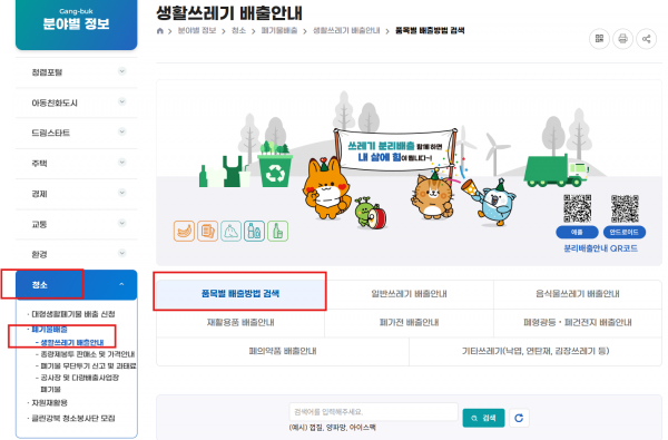 [강북구] 강북구 홈페이지 내 주민 맞춤형 폐기물 분리배출 검색시스템 구축
