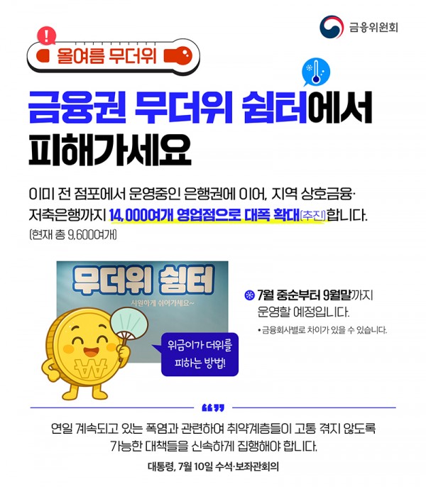 올여름 무더위, 금융권 무더위 쉼터에서 피해가세요.