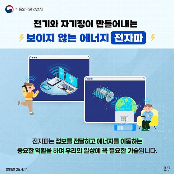 전자파는 정보를 전달하고 에너지를 이동하는 중요한 역할을 하며 우리의 일상에 꼭 필요한 기술입니다.