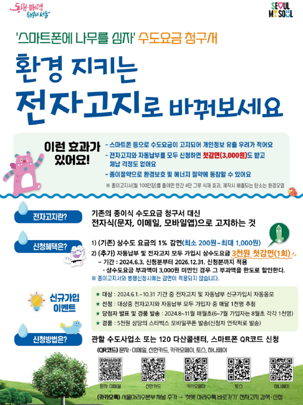 [환경] 수도요금 전자고지로 바꾸고 3천원 첫 감면, 매달 1% 할인 챙기세요!