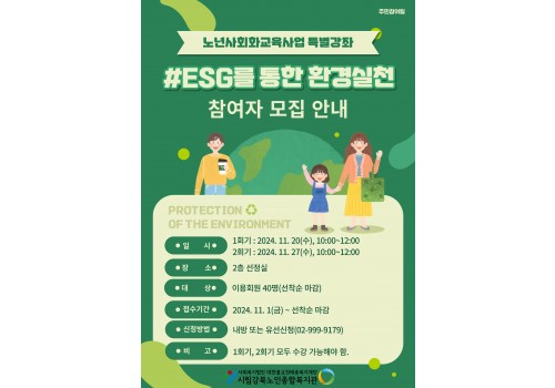 [주민참여] 2024년 노년사회화교육사업 ESG 특별강좌(ESG를 통환 환경실천)