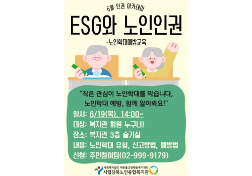 [주민참여] 권익증진사업 6월 인권 아카데미 - ESG와 노인인권(노인학대예방교육)