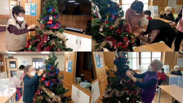 어르신들과 함께 트리를 꾸미고 점등식을 진행하였는데요. 반짝반짝 완성한 트리를 보면서 모두 좋아하셨습니다.