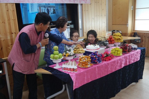 강북데이케어센터에서는 어르신들의 유대감 증진 및 즐거움 제공을 위하여 2018년 9월 어르신 생신잔치를 실시하였습니다. 본 행사는 센터장님 축하말씀을 시작으로 생신축하 노래 부르기, 선물증정식, 보호자에게 받은 손 편지 낭독, 즐거운 노래방강사, 직원들과 함께하는 여흥 순으로 진행하였습니다.
