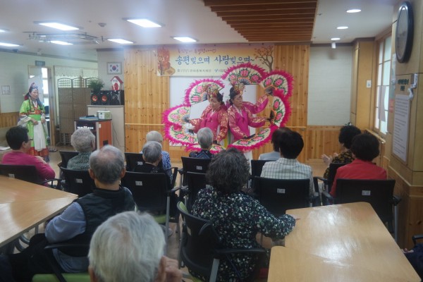 강북데이케어센터에서는 한가위 명절(추석)을 맞이하여 센터 어르신의 유대감 증진, 정서적 지지와 즐거움을 제공하여 드리고자 특별행사를 실시하였습니다. 이번 행사는 센터장님 축하말씀을 시작으로 시립강북노인종합복지관 희망강북봉사단의 한국무용, 설종구님의 트로트 메들리 하모니카 공연, 직원들과 함께 하는 송편빚기 순으로 진행하였습니다. 올해 추석에도 우리 어르신 가정에 ‘더도 덜도 말고 한가위’ 같은 풍요로움과 넉넉함이 가득하기를 기원합니다.