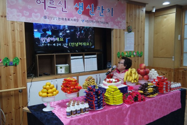 강북데이케어센터에서는 어르신들의 유대감 증진 및 즐거움 제공을 위하여 201710월 어르신 생신잔치를 실시하였습니다. 본 행사는 센터장님 축하말씀을 시작으로 생신축하 노래 부르기, 선물증정식, 보호자에게 받은 손 편지 낭독, 직원들과 함께하는 즐거운 노래방 교실순으로 진행하였습니다.
